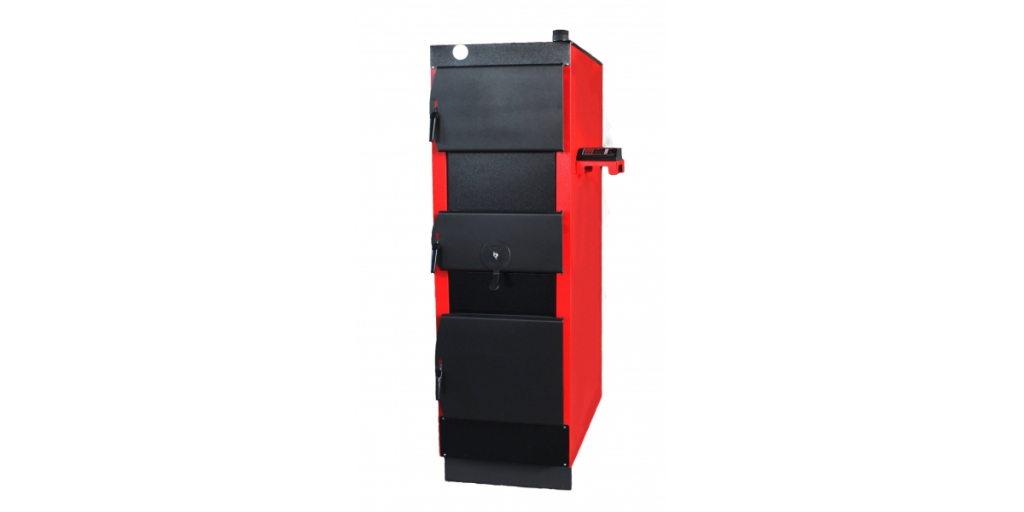 Котел можно монтировать как в открытых системах отопления c естественной циркуляцией теплоносителя, так и в закрытых системах с принудительной циркуляцией. Корпус котла имеет цельно сварную конструкцию и состоит из топки – теплообменника и наружного кожуха. Пространство между кожухом и топкой заполнятся теплоносителем (водой) теплообмен происходит по всей наружной поверхности топки. Теплообменник котла изготовлен из качественной стали толщиной 4- 5 мм. Котел комплектуется воздухонагнетателем (вентилятором) и контроллером (микропроцессорным терморегулятором) что обеспечивает оптимизацию процесса горения дров при различных режимах и длительность горения на одной закладке от 6 до 15часов